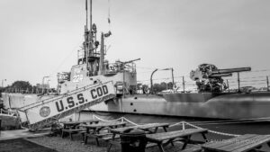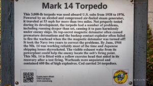 Following the war Cod was decommissioned in 1954 and used as a training vessel on Lake Erie until 1971 when she was finally stricken. Saved from potentially being scrapped by Cleveland Coordinating Committee to Save Cod, Inc as was the fate of many WWII era submarines, Cod became a floating memorial and museum on Lake Erie and opened to the public in 1976.