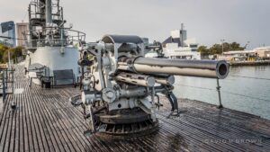 Crew: Originally 6 officers and 54 enlisted, this grew to as many as 90 total later in the war as new weapons and duties evolved.