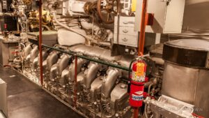 Propulsion: 4 × General Motors Model 16-248 V16 Diesel engines 5,400 hp each driving electric generators.